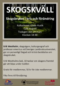 SKOGSKVÄLL – Skogsbruket i kris och förändring 24 mars kl. 18.30 i Kulturhuset!