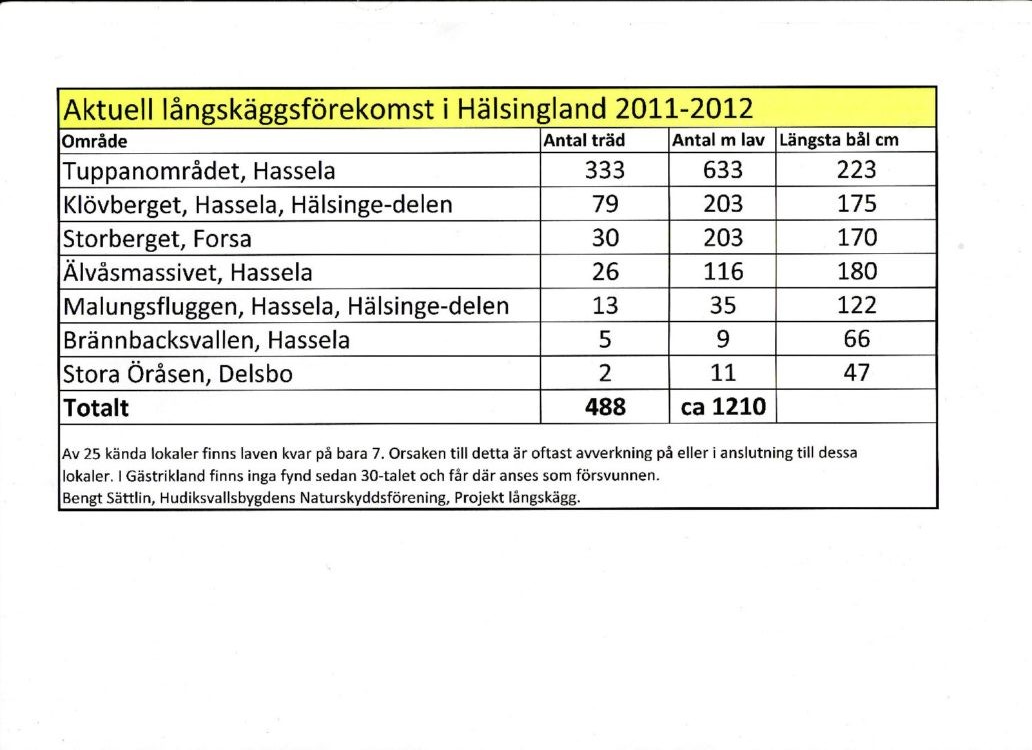 Här finns en resultatsammanställning av en inventering som vår förening genomfört gällande förekomsten av laven långskägg i Hälsingland.