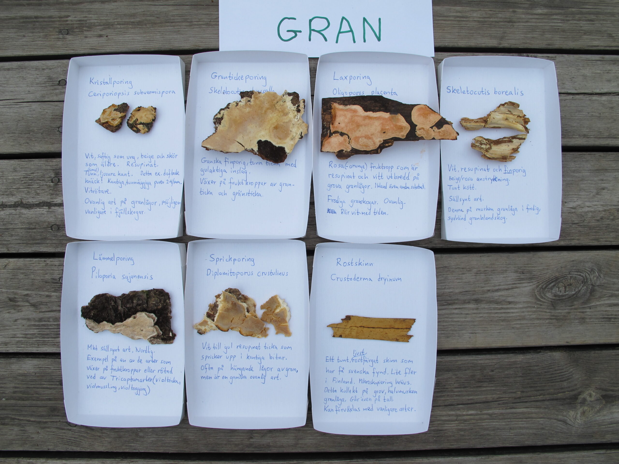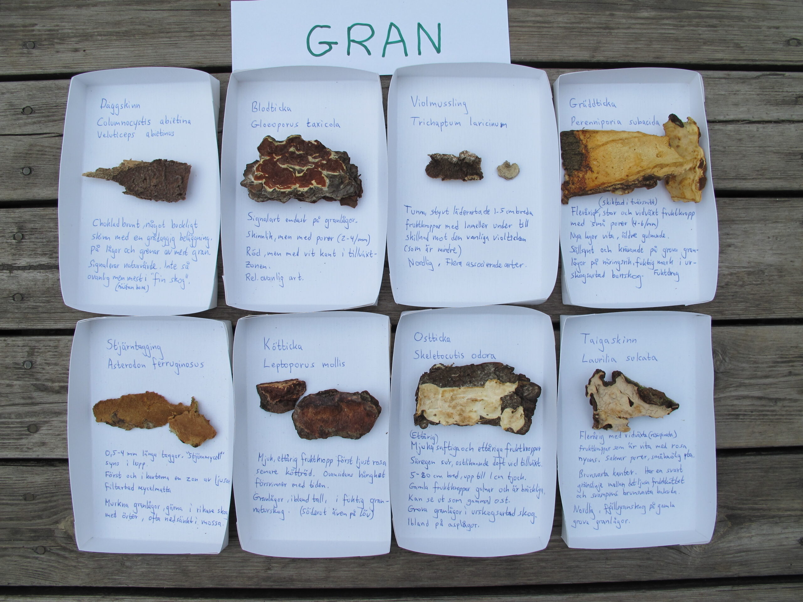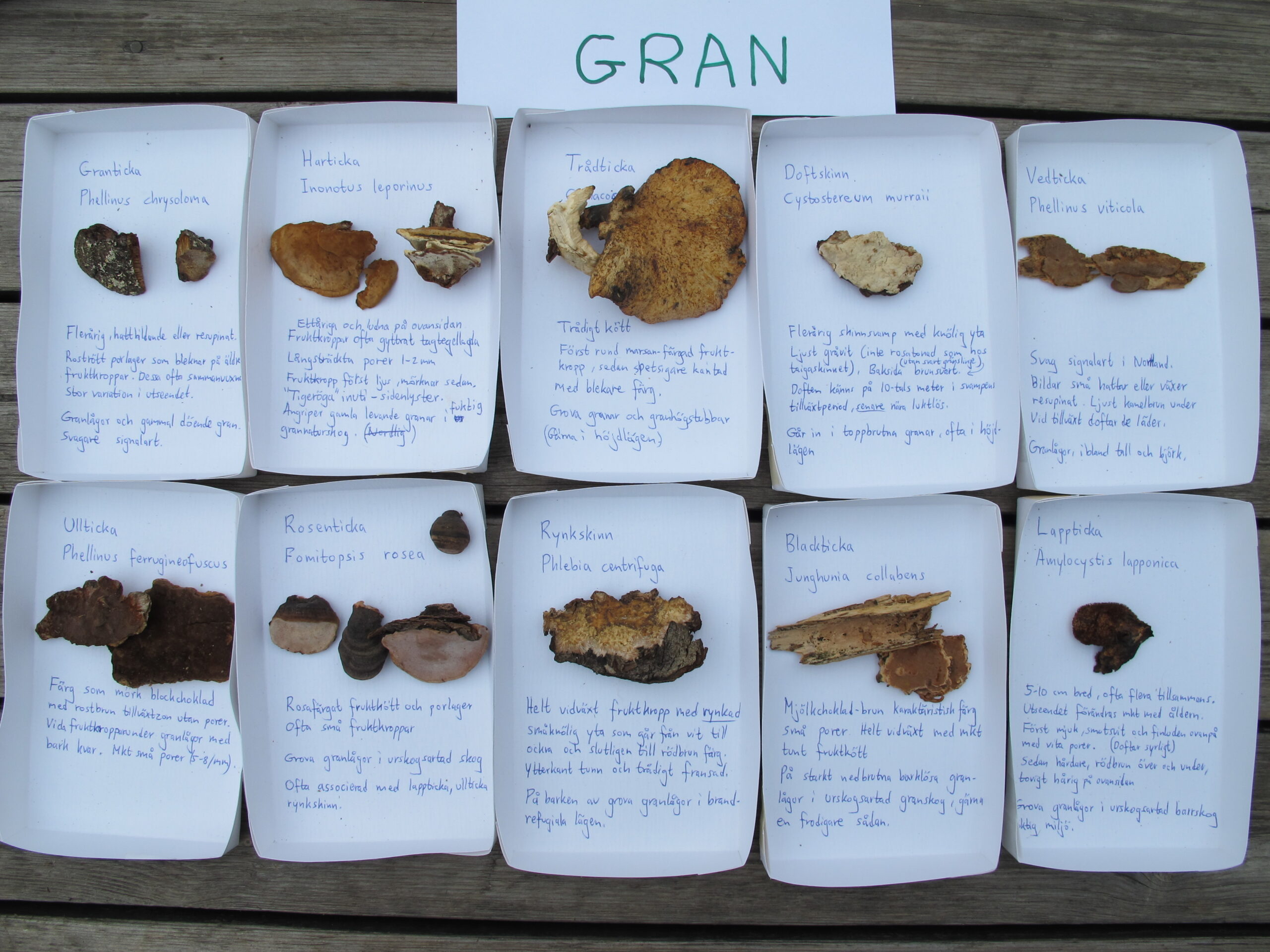 Nedanstående länkar visar bilder av en samling vedsvampar som indikerar höga naturvärden. En hel del av dem är sällsynta och hotas i olika grad av utrotning, mestadels på grund av skogsbrukets påverkan.
